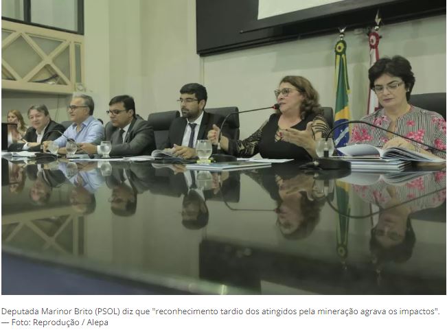 Em pronunciamento, a deputada Marinor Brito (PSOL), presidente da comissão, disse que “não se pode afirmar que não existe risco às barragens, mas que não existe mineração sem degradação, sem impacto ao meio ambiente e à dignidade humana”.