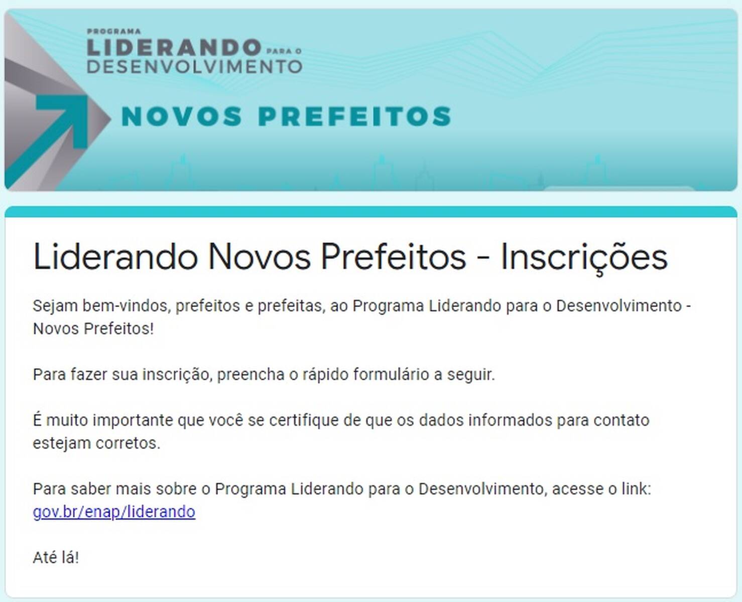 Liderando Novos Prefeitos – Inscrições