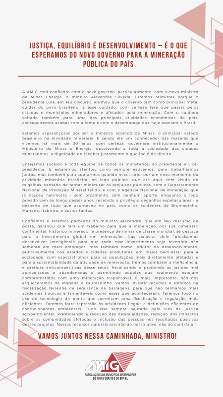 Justiça, equilíbrio é desenvolvimento – é o que esperamos do novo governo para a mineração pública do país